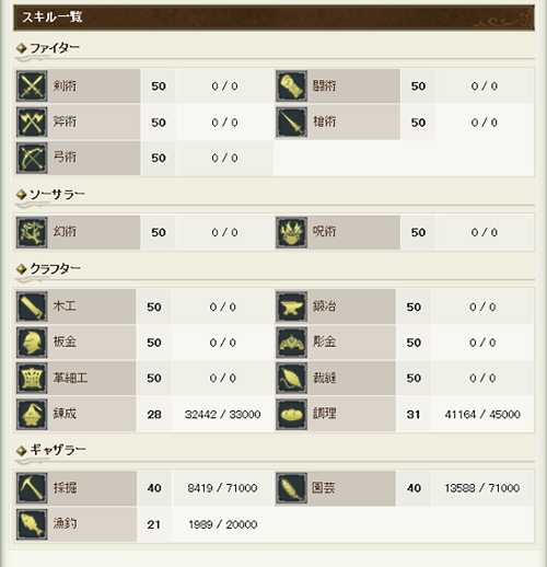 クラフターの方は、主要なものはカンストできました。錬金調理はしんなまのお楽しみです。